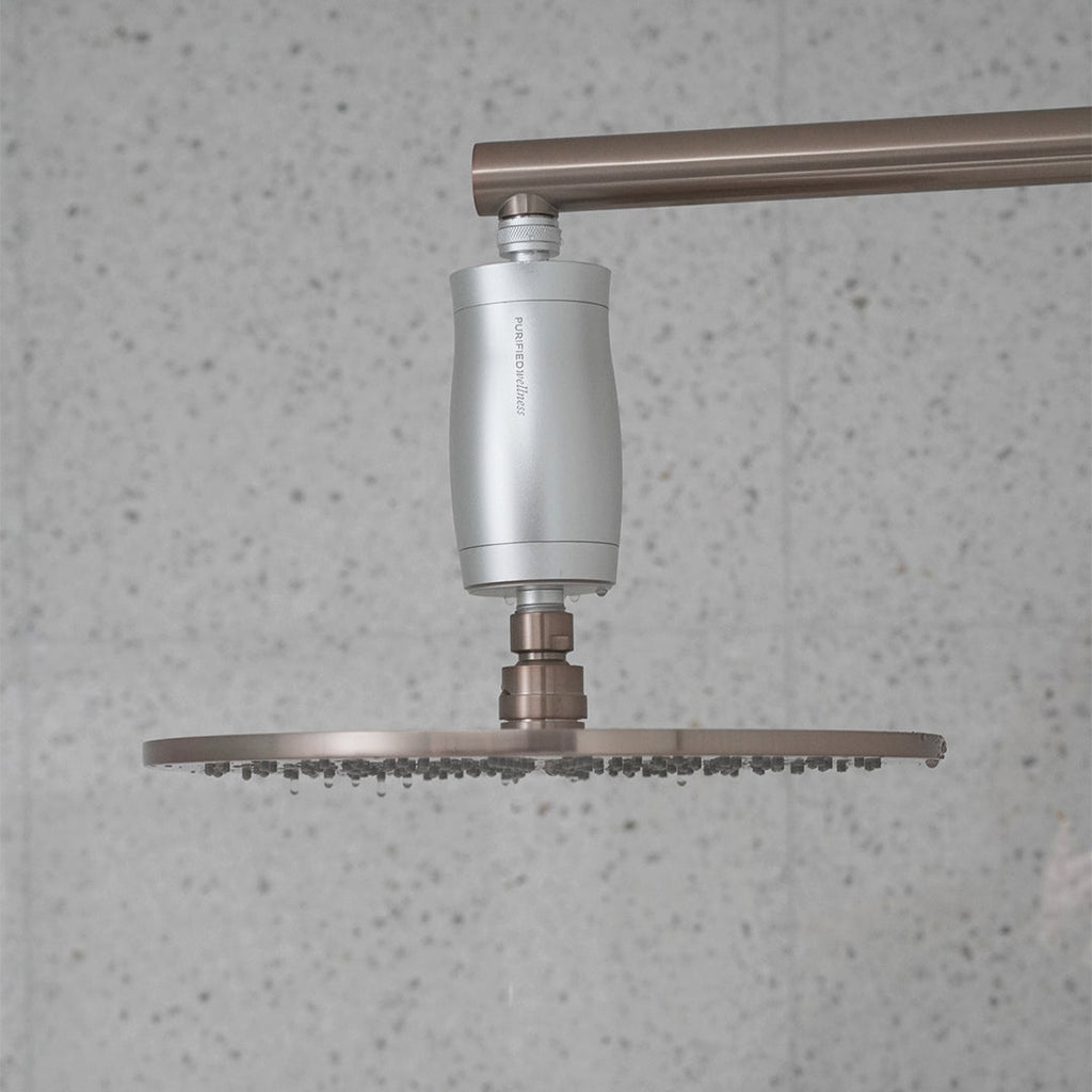 The Purified Wellness Shower Filter removes up to 99% of chlorine, heavy metals and common water toxins, while infusing 5% granular Vitamin C to neutralise and support deep hydration and strengthen skin barrier. The result is calmer, more balanced skin, reduced irritation and healthier, stronger-looking hair.